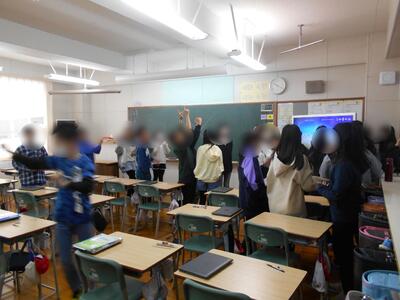今日の中休み、6年生は学年児童会の企画で、教室を使った○✕クイズを行いました。