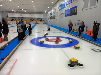 先週に引き続きカーリング授業を行いました。午前中に5年1組、そして午後に5年2組が、実に1年ぶりとなるカーリング授業を行いました。まずは6年生の時と同様、氷の上の感覚を取り戻すために歩いたり、アザラシのように腹ばいで滑ったりしました。1年ぶりとは思えないほど、すぐに氷の感覚に慣れ、楽しそうに準備運動に取り組んでいる姿が見られました。安全に十分配慮しながらも氷上の楽しさを全身で感じていました。