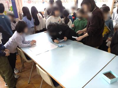 本日の中休み、図書委員会が企画したイベントが図書室にて開催され、1年生から6年生までたくさんの参加者が集まりました。