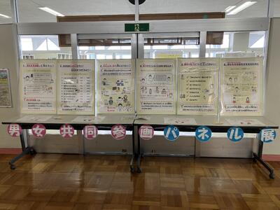 稚内市役所の取り組みの一環として、学校の玄関ホールにて男女共同参画パネル展が展示されています。