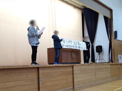 6年生の代表児童による3学期の頑張り発表では、「後悔のないように過ごしていきたい」という卒業まで残り少ない小学校生活を、一日一日大切に、有意義に過ごしていきたいという力強い決意が発表されました。